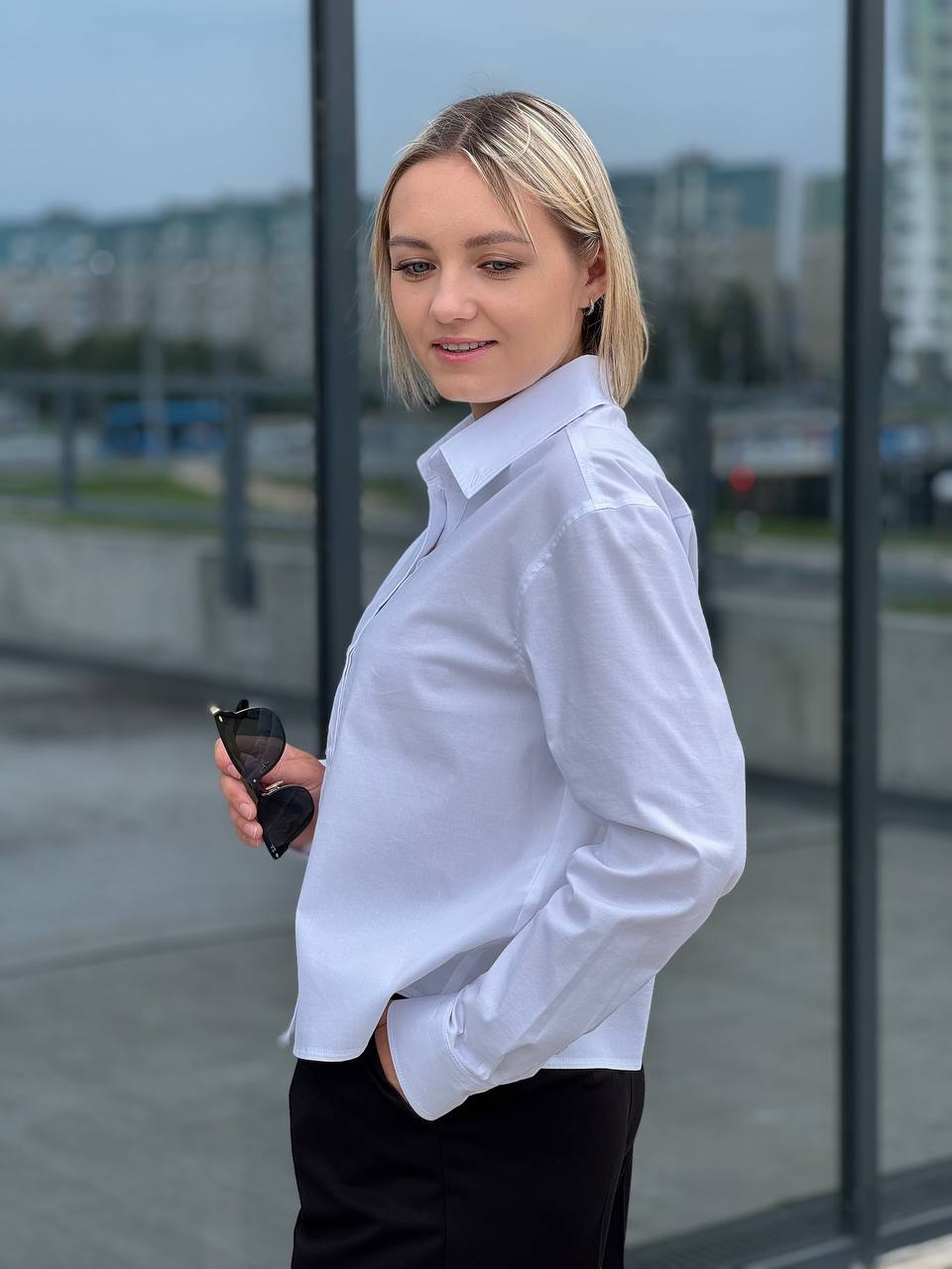 Стильная базовая модель рубашки свободного кроя и легкого силуэта, сшитая из натурального хлопка - дышащая и приятная к телу.