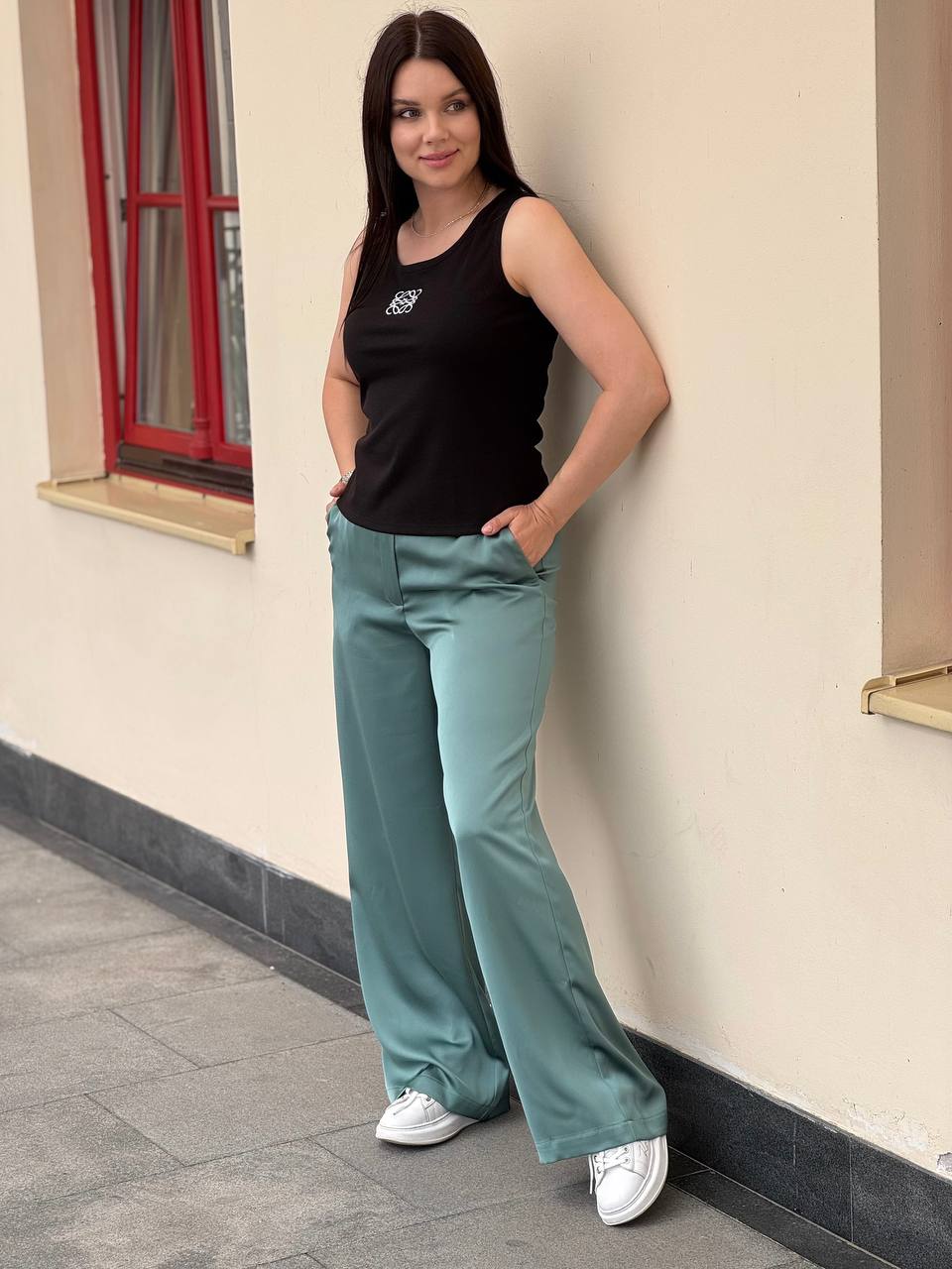 Эффектные брюки из шелковой ткани с резинкой на талии.