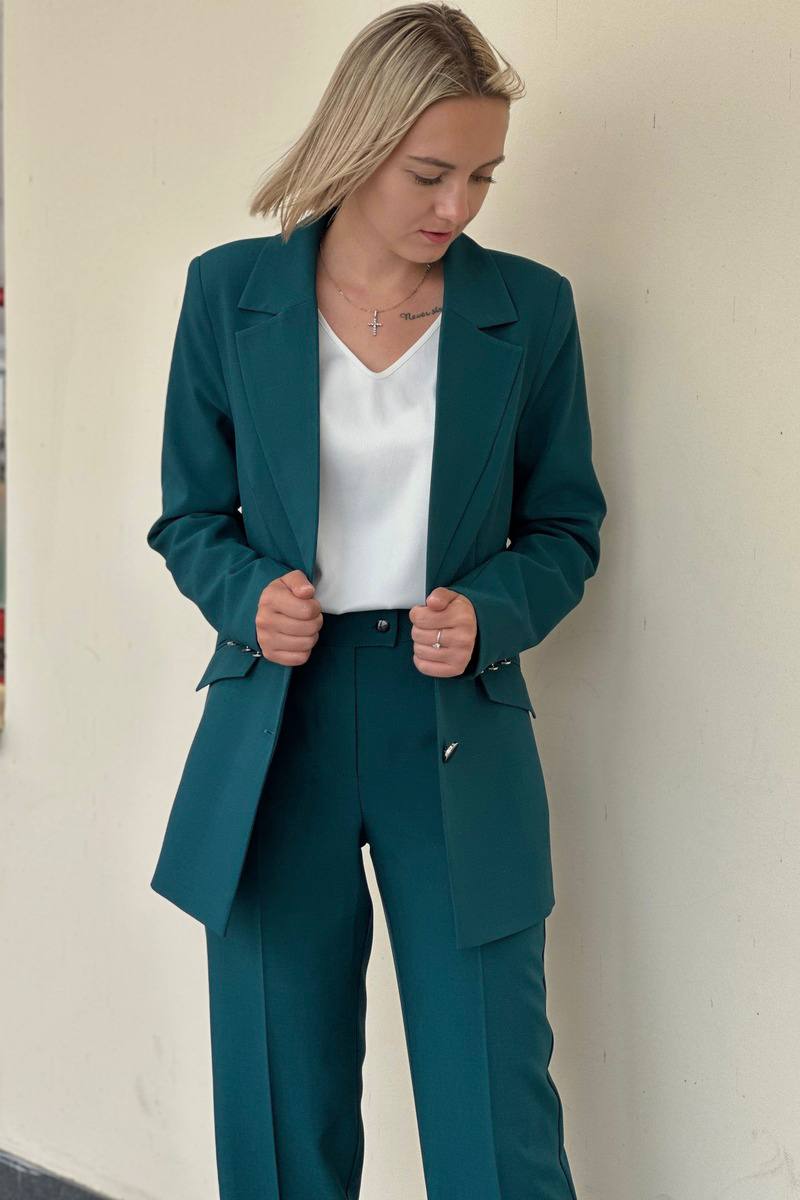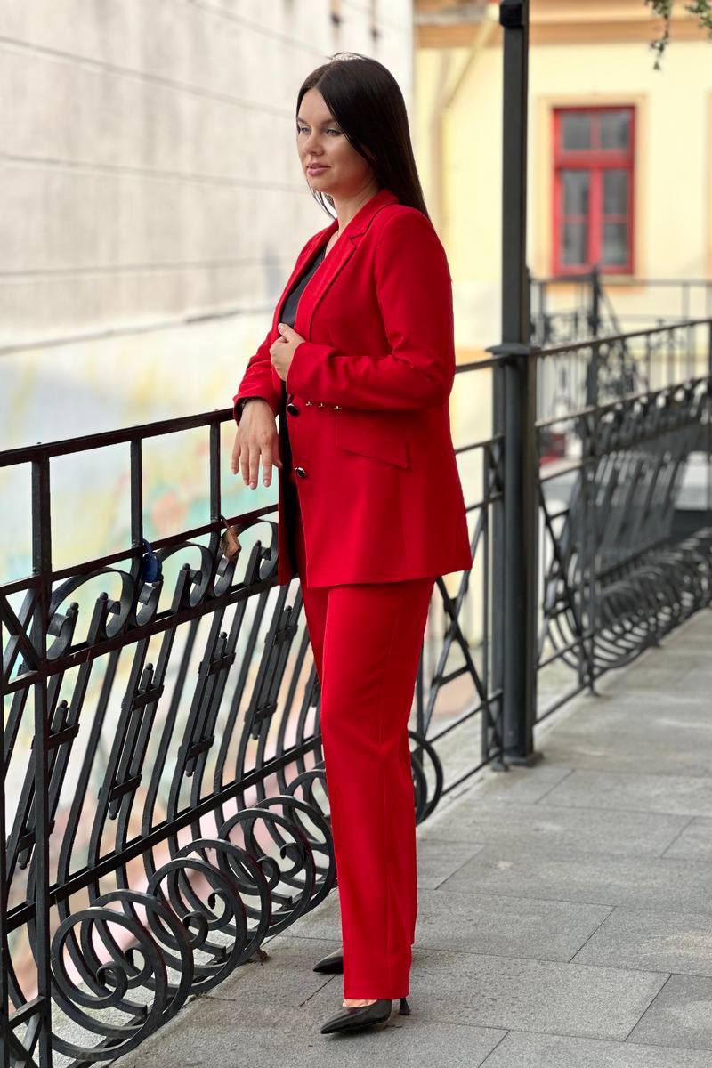 Деловой и женственный брючный костюм прямого кроя - базовое решение для вашего гардероба. Приятная ткань, акцентные пуговицы и интересные оттенки - все, чтобы ваши выходы стали еще ярче и эффектнее.