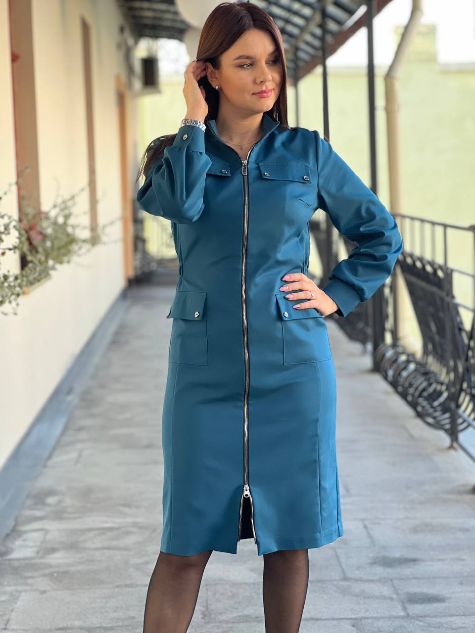 Стильное платье на молнии с акцентными карманами в интересных оттенках, которое подойдет не только для создания официальных, но и повседневных образов. Вы точно не останетесь незамеченной и соберете комплименты.
