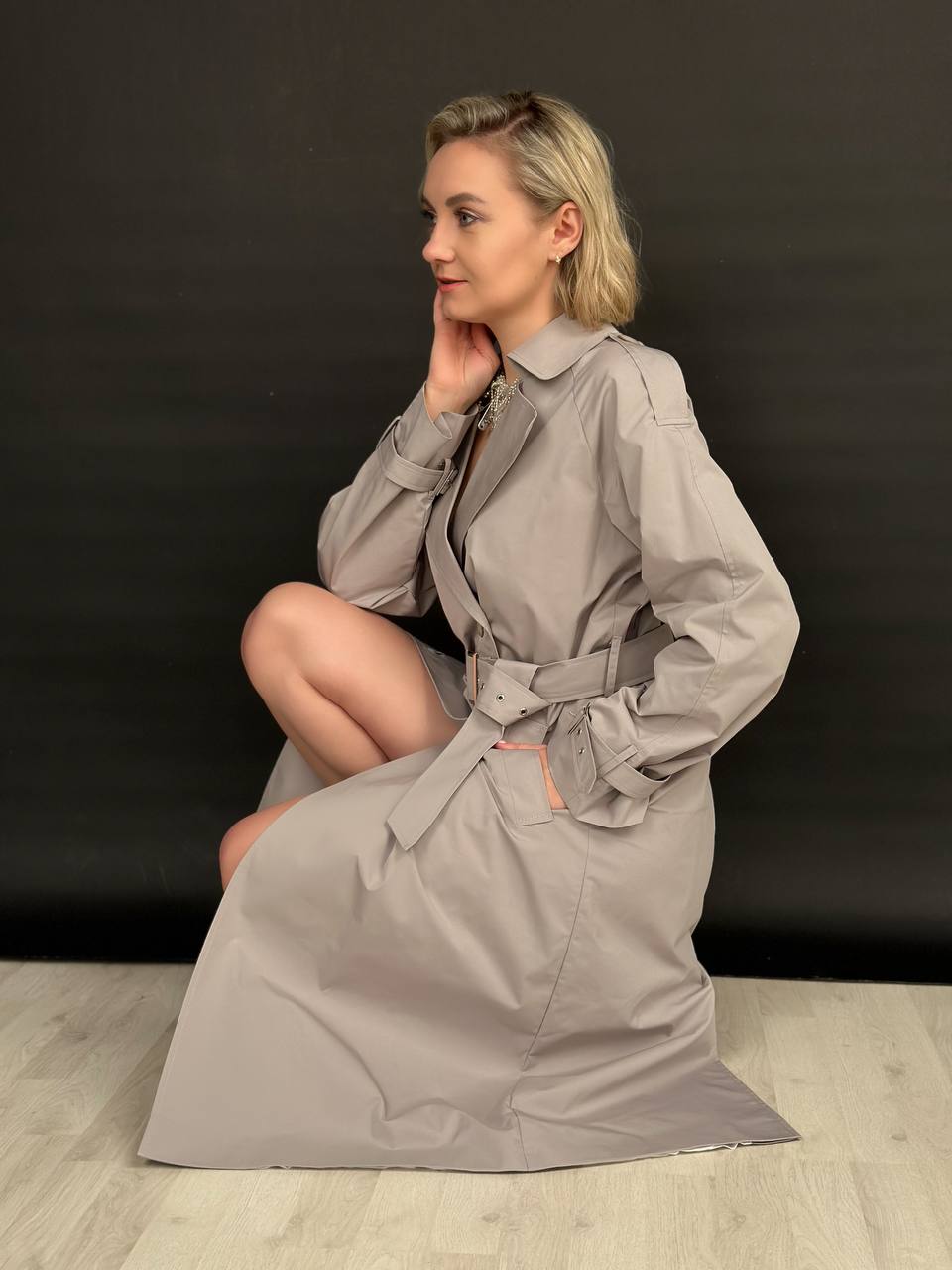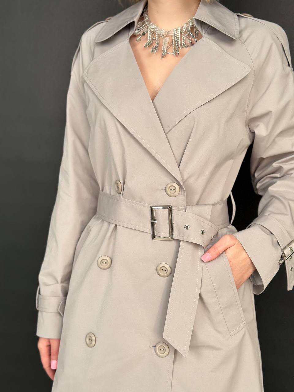 Комфортный тренч из высококачественной ткани с пропиткой на натуральной подкладке в самых нежных оттенках с акцентными пуговицами и поясом с металлической пряжкой, подчеркивающим талию.