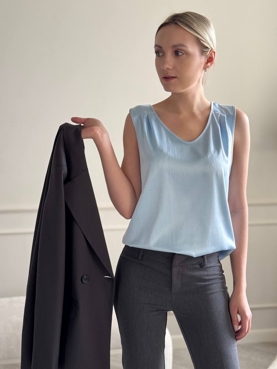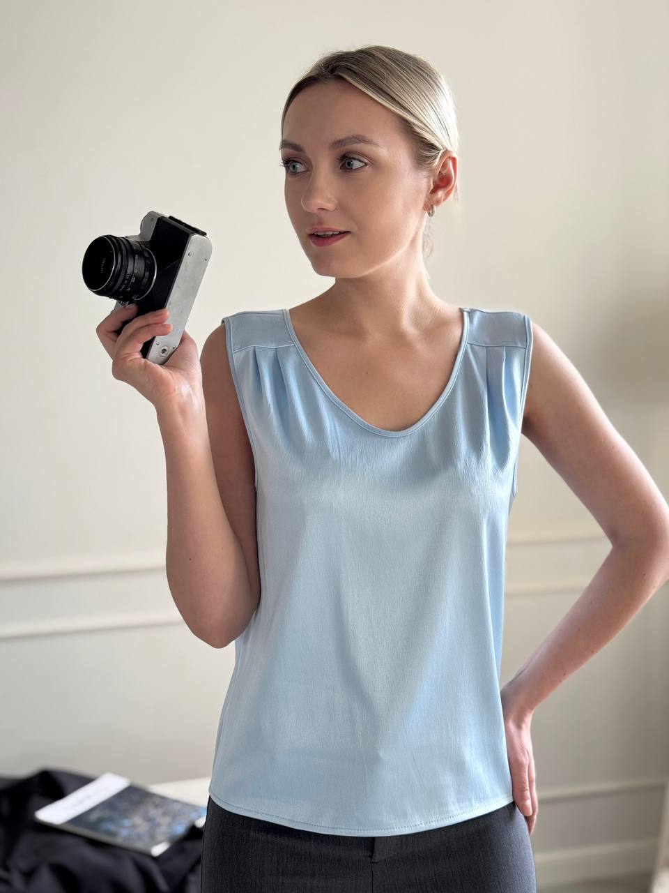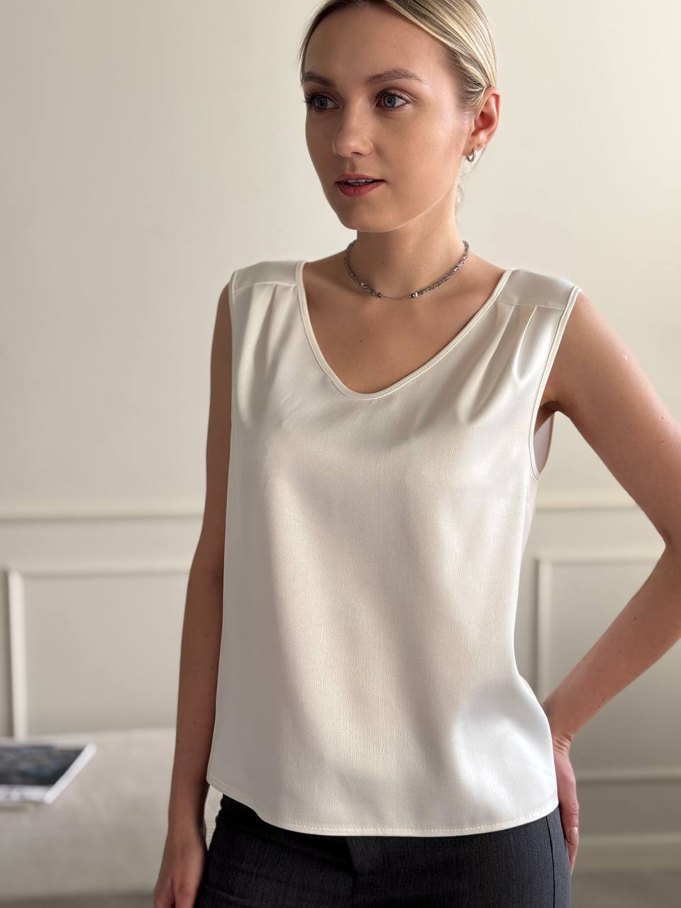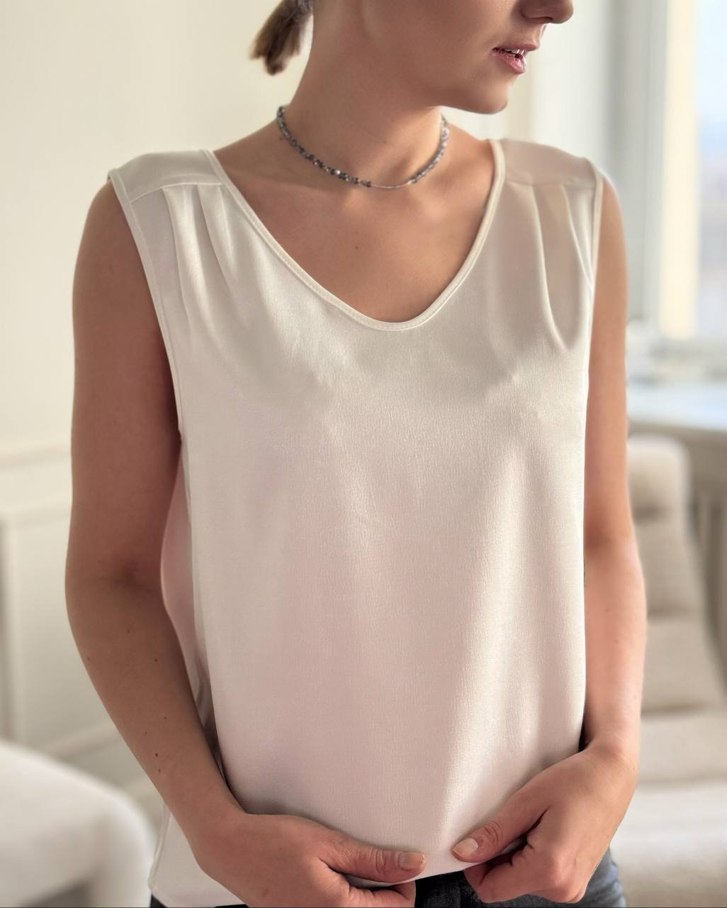 Базовый топ прямого силуэта из шелковой ткани, который дополнит и украсит любой образ.