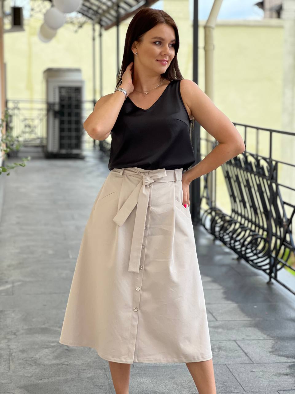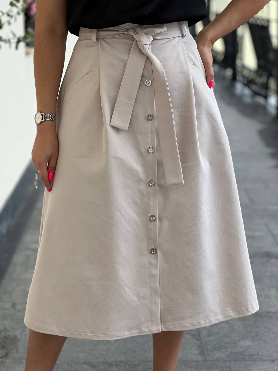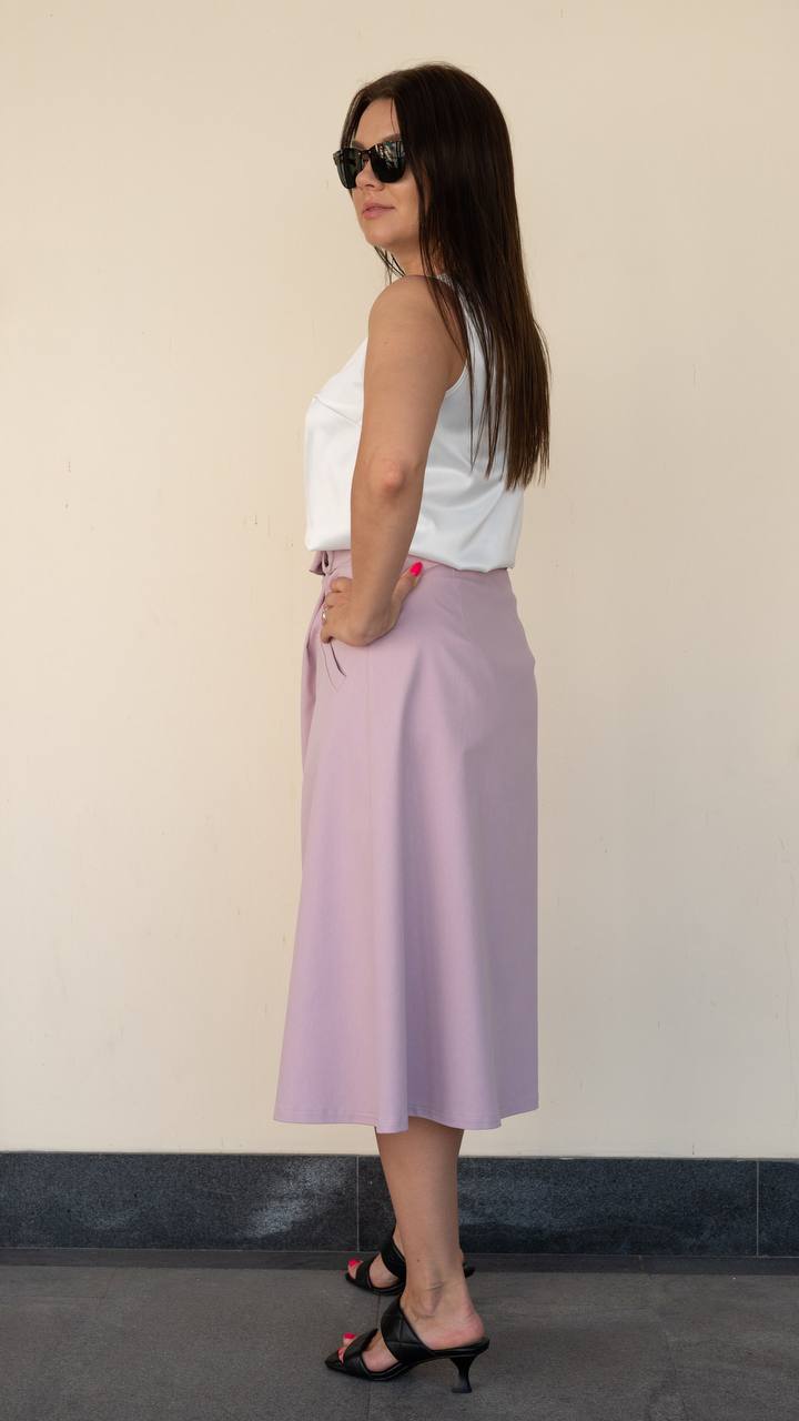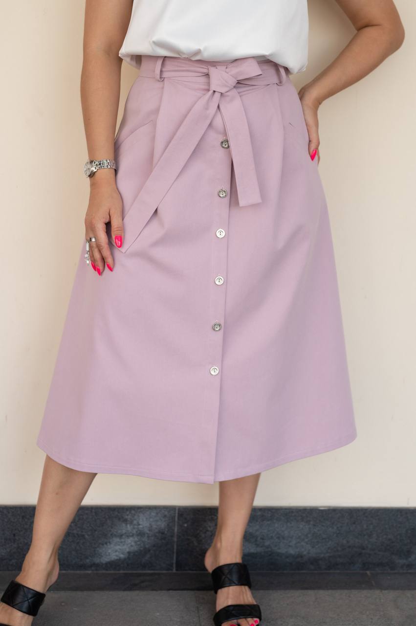 Стильная и комфортная юбка А-силуэта в миди длине из премиум хлопка. Расслабленный силуэт, нежные оттенки и натуральная  ткань - отличный выбор для вашего гардероба.