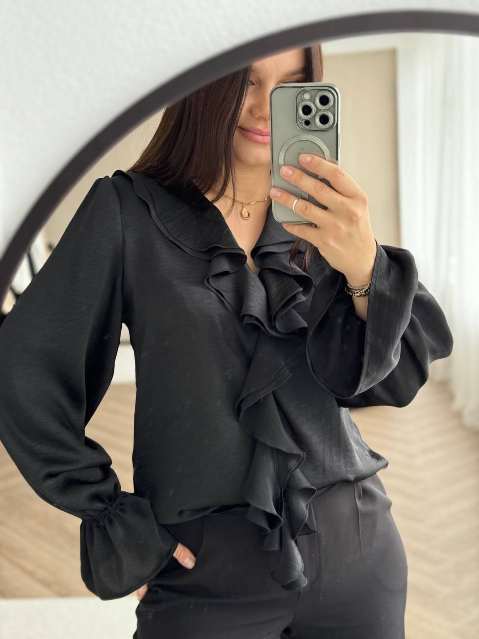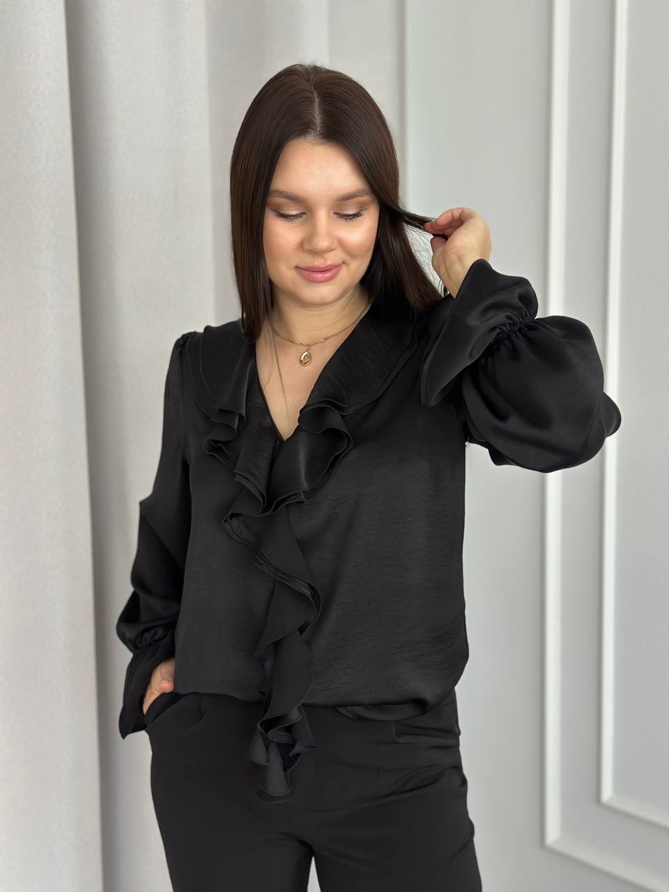 Идеальная трендовая блуза с воланами, выполненная из качественной шелковистой ткани.