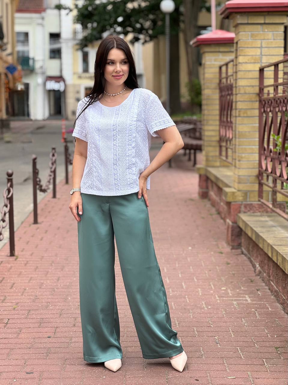 Эффектные брюки из шелковой ткани с резинкой на талии.