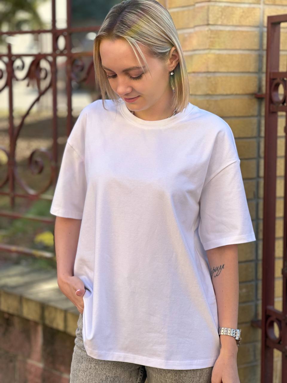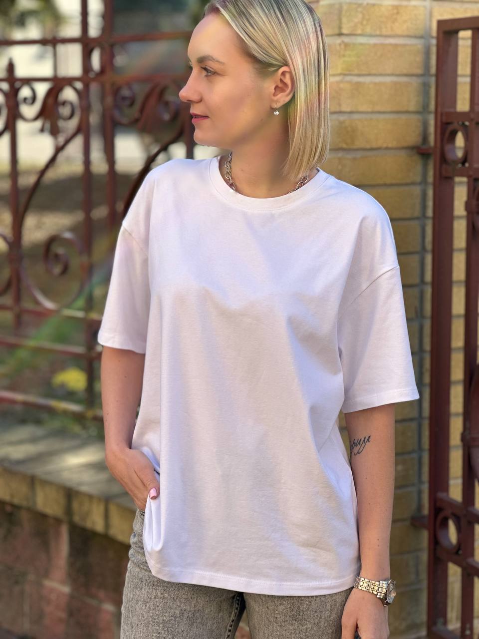 Хлопковая футболка свободного кроя - базовая вещь Вашего гардероба.