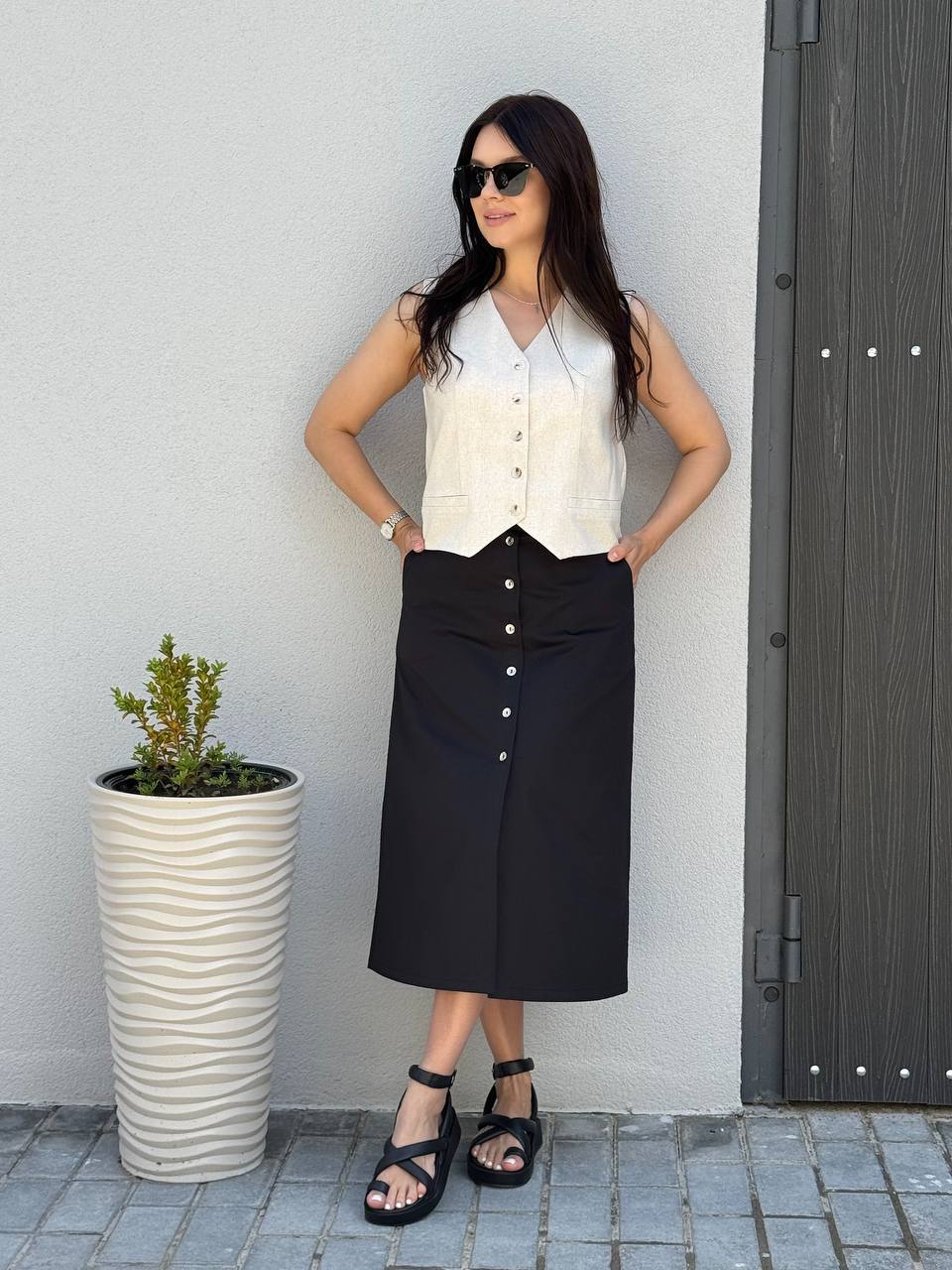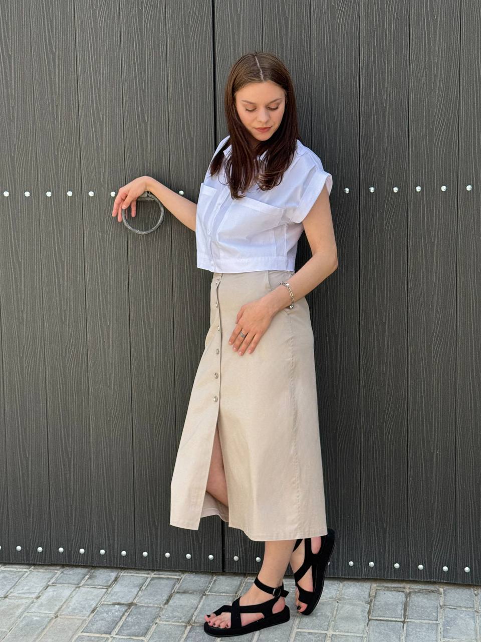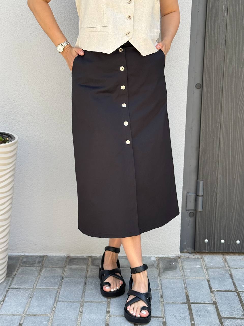 Стильная юбка в длине миди из премиального хлопка с акцентными пуговицами спереди.