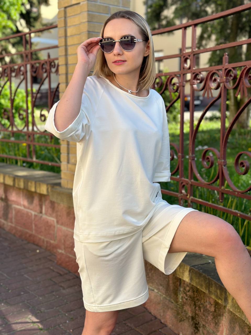 Комфортный костюм свободного силуэта с шортами из премиальной хлопковой ткани.