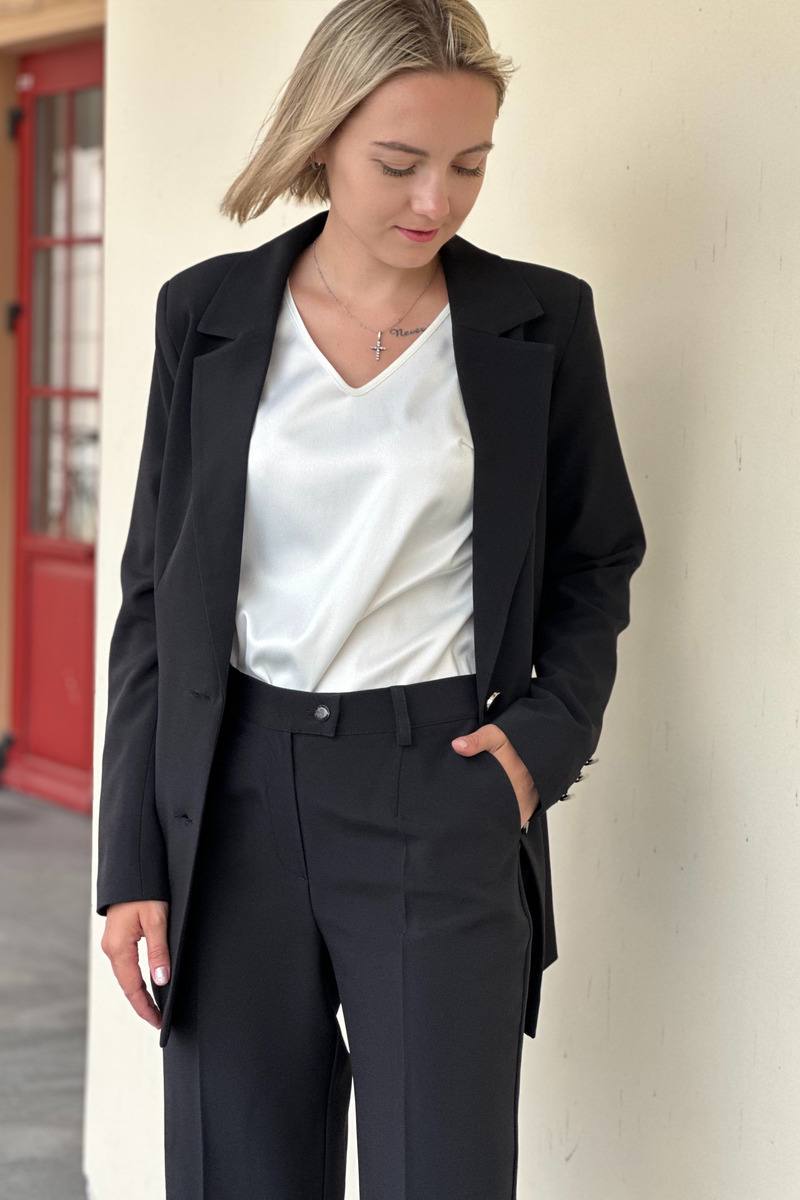 Деловой и женственный брючный костюм прямого кроя - базовое решение для вашего гардероба. Приятная ткань, акцентные пуговицы и интересные оттенки - все, чтобы ваши выходы стали еще ярче и эффектнее.
